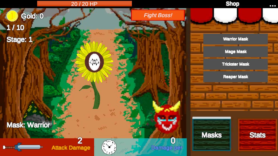 Mask Hero is a prototype idle clicker RPG game. Players tap to attack enemies, earn gold, and upgrade their stats to push through increasingly tougher waves. Built from scratch, the game focuses on core mechanics like rapid progression and simple upgrades.